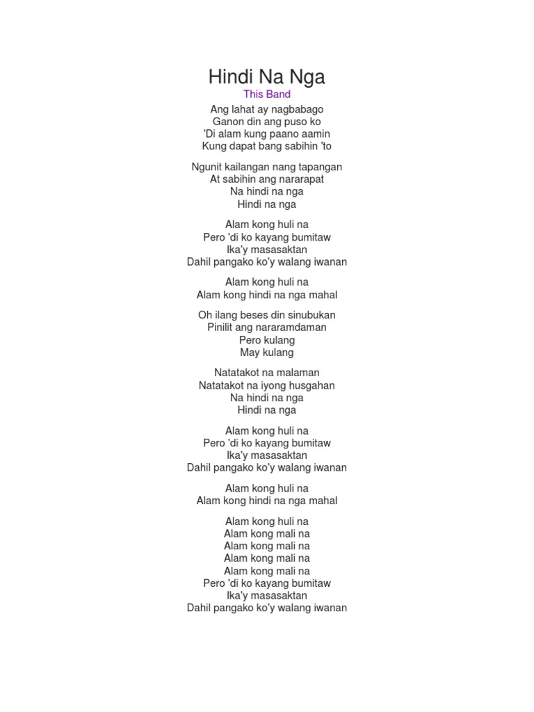Lubos na ang aking saya pag kasama kita pag wala ka di mapakali. 21092018 G D Em C x2 G D Ang lahat ay nagbabago Em C Ganon din ang puso ko G D Di alam kung paano aamin Em C Kung dapat bang sabihin to Em Ngunit kailangan nang tapangan D At sabihin ang nararapat C Na hindi na nga D Hindi na nga G Alam kong mali na D Pero di ko kayang bumitaw Em Ikay masasaktan C Dahil pangako koy walang iwanan G Alam kong huli na D Em C Alam kong hindi na nga mahal G Oh ilang beses din sinubukan D Pinilit ang nararamdaman Em Pero kulang C May kulang G Natatakot na. Sa ding ding Kana-boon Kana nishino Ka Kaťata bro Na bebić Na dosah Na hadry.