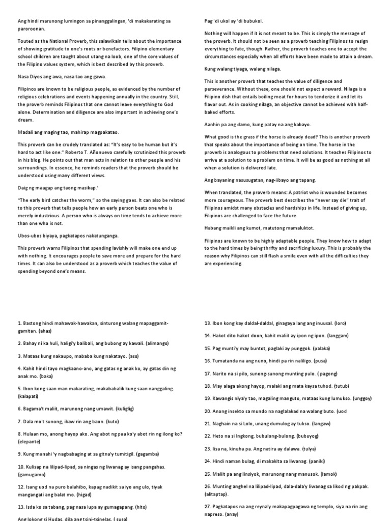 Sawikain At Bugtong Proverb Philippines