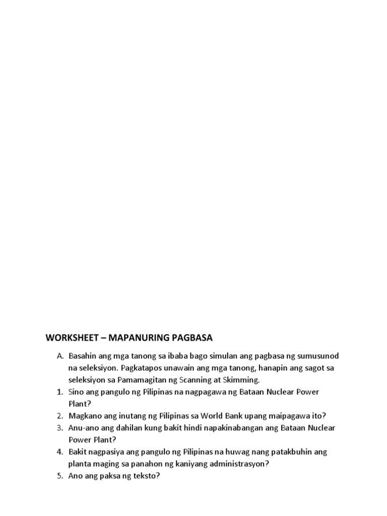 World Languages 28102019 2129. Filipino 28102019 1446 lhadyclaire. Ano ang dahilan kung bakit hindi napakinabang ang bataan nuclear plant.